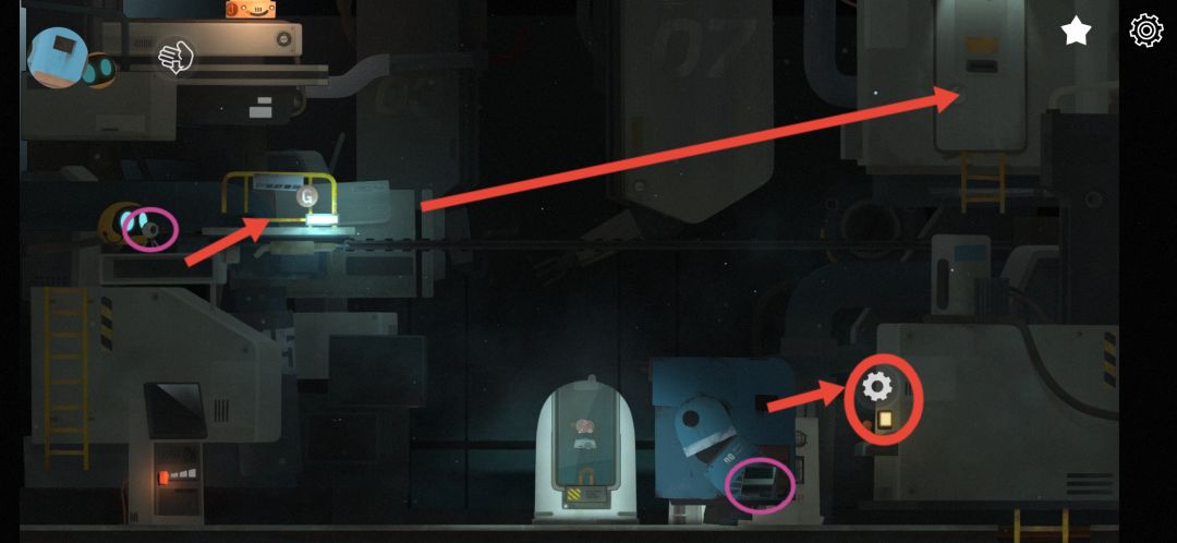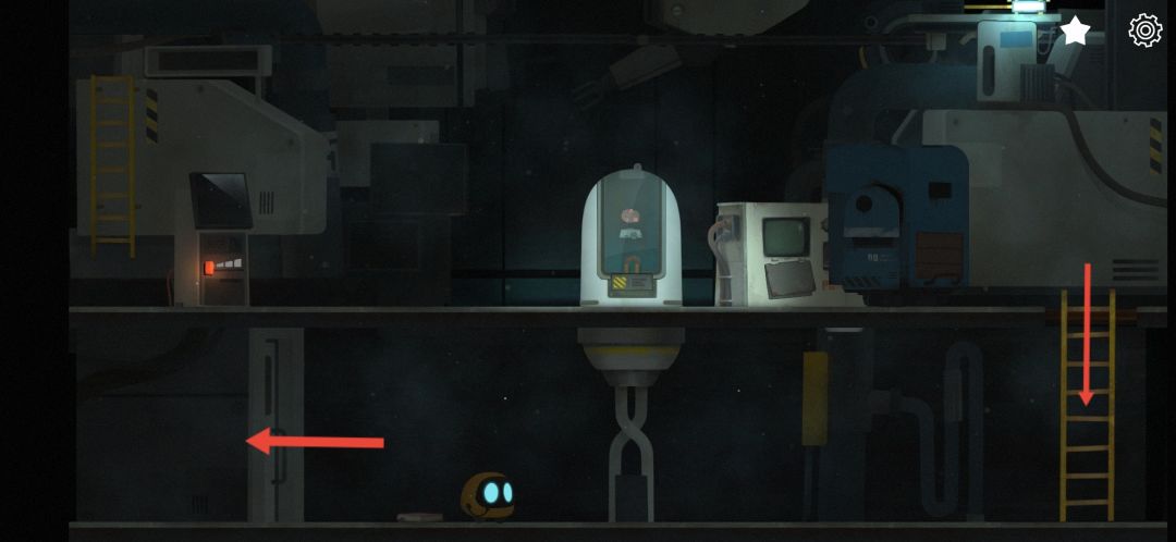 6.之后我们就要带着杰米跑路了。我们来到电梯,发现电梯卡住了,操纵艾彼进入电梯,先点击向下,让迪迪走到电梯的上方。再选择上升逃出实验室。中途会遇到落石卡住电梯,我们操纵迪迪点击落石就能逃出生天了。