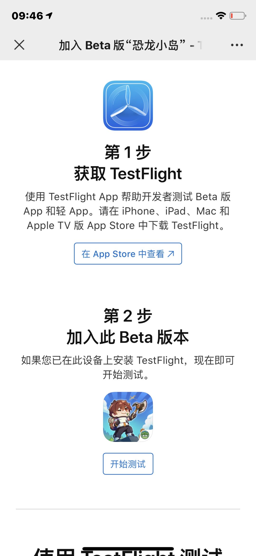 流程就是先下载 Testflight,然后再点击开始测试按钮,就会跳转到下载界面