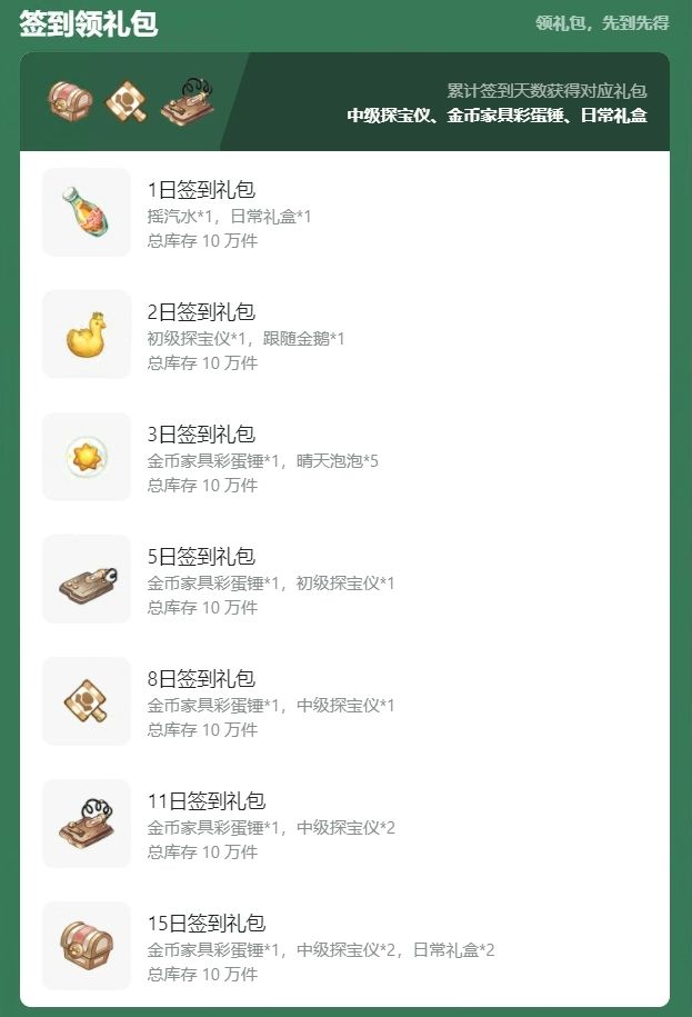 3.在本页面点击【立即签到】,活动期间内累计签到签到天数,可获得对应礼包。