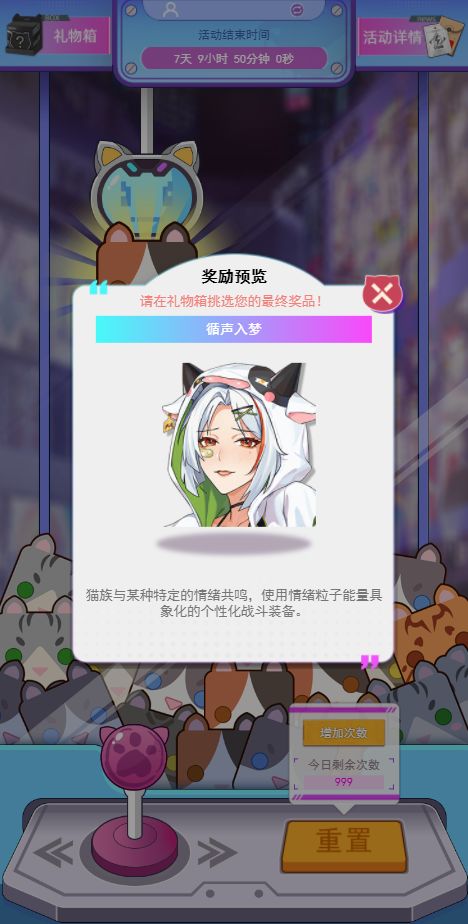 点击“抓取”即可随机抓取到一个奖励,并放入礼物箱