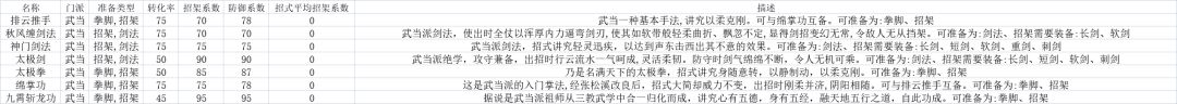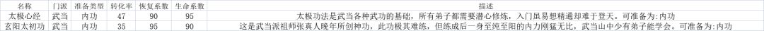 输出:武学数量一般,数量质量上没有明显偏向,只有剑法与拳脚两种输出手段。