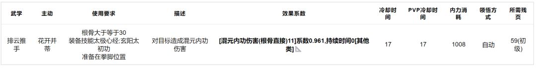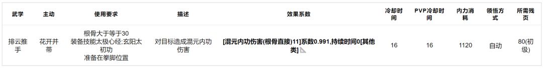 排云推手:与绵掌功可组合为互备拳脚,低转前期过渡可以拿来过图用,入门级武学。