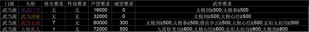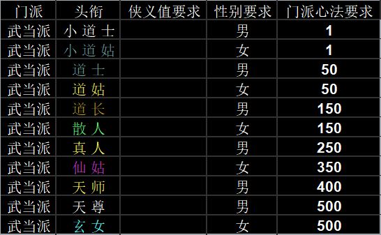 门派心法称号:(没错,即便武当派不收女弟子,也有女弟子的心法称号)