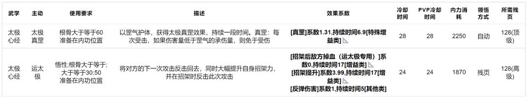 太极心经:效果如下,应对爆发对手效果非常好,技能提升重数优先级在门派内是非常高的。
