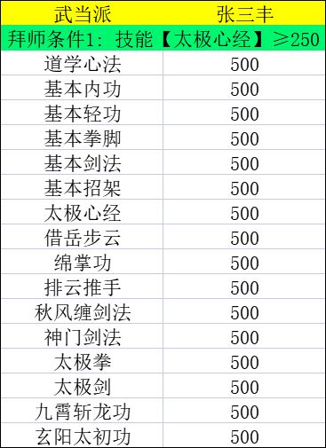 【九霄斩龙功】: 技能【太极拳】≥400级、技能【太极剑】≥400级、技能【绵掌功】≥200级