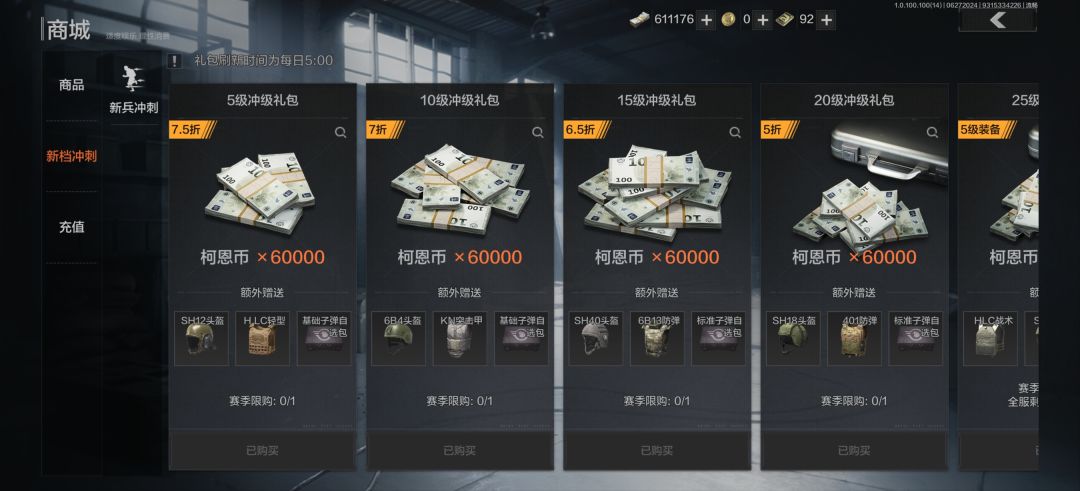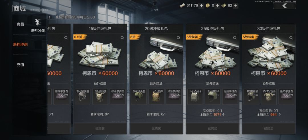 这三张是商场一部分也是我本人推荐大家可以买的因为很划算很值等级这些礼包虽然需要点卷但是不贵而且里面的物品很适合前期萌新们进行过度用的,有钱的大佬可以买一下每周限购和每月限购的礼包。