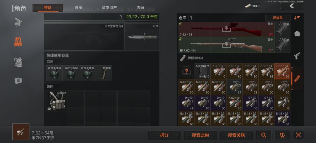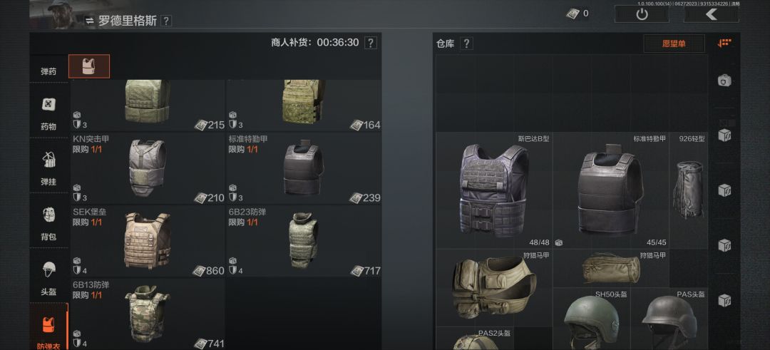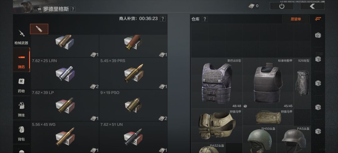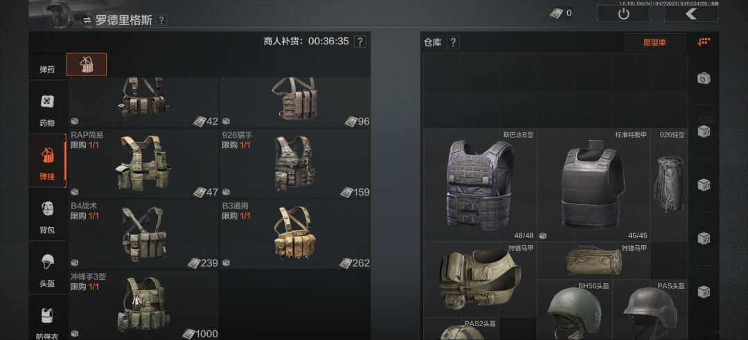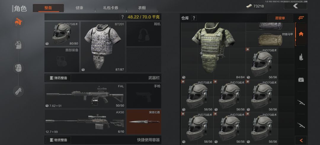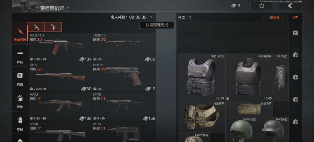 这是整备界面这里主要是进入游戏前提前把武器,药品等一些物资准备好不过前期建议各位萌新小伙伴先跑刀熟悉熟悉一下地图。