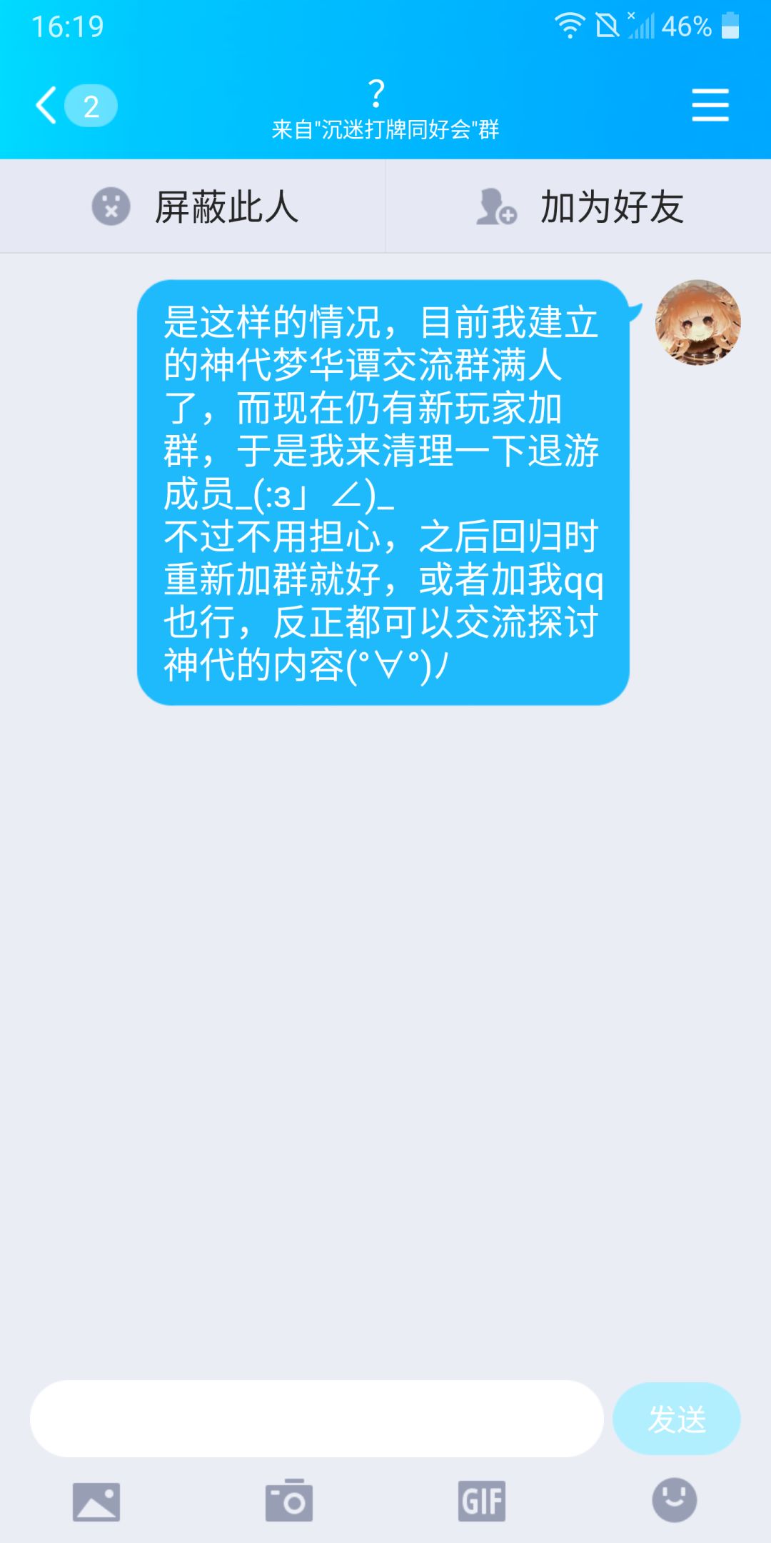 不过大家也无需担心,在我以及管理清人前和对方说一声,以后回归时重新加回来就行,或者加我qq也行,反正都可以探讨交流神代嘛233(下图是我当时清理不活跃成员时的留言)