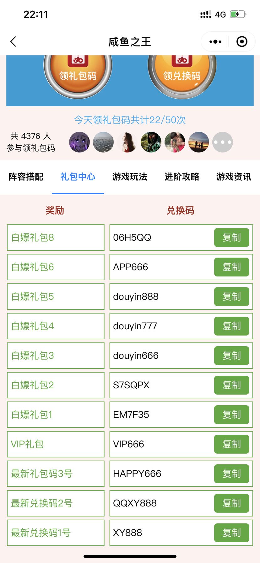 咸鱼之王兑换码 你值得拥有。