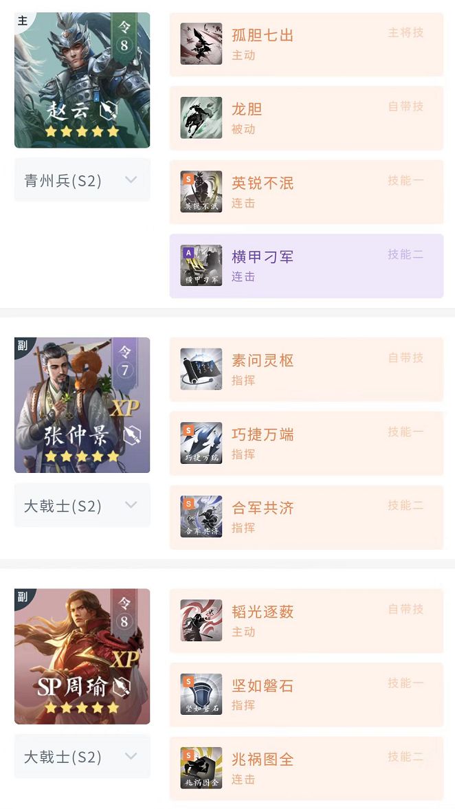 三枪的门槛主要来源于技能配置,英锐不泯、巧捷万端、合军共济等核心技能都有获取难度,不过队伍中只有张仲景是限定核心,赵云虽然也是核心卡,但常驻武将获取渠道更稳定。