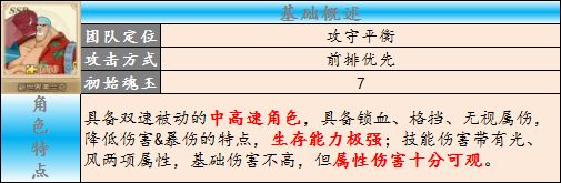 曙光之阵的站位对后排的保护的同时,对前排有着极高的要求,新世界弗兰奇的到来完美的解决了这问题。在黑胡子的黑盾支撑下,新世界弗兰奇可以从容释放奥义并进入延展状态。有一定速度保证的前提下,还有机会通过嘲讽保护前排失去黑盾的黑胡子。只要身后的新世界山智保证见闻感知效果,嘲讽效果也是完全不会被列伤所影响。