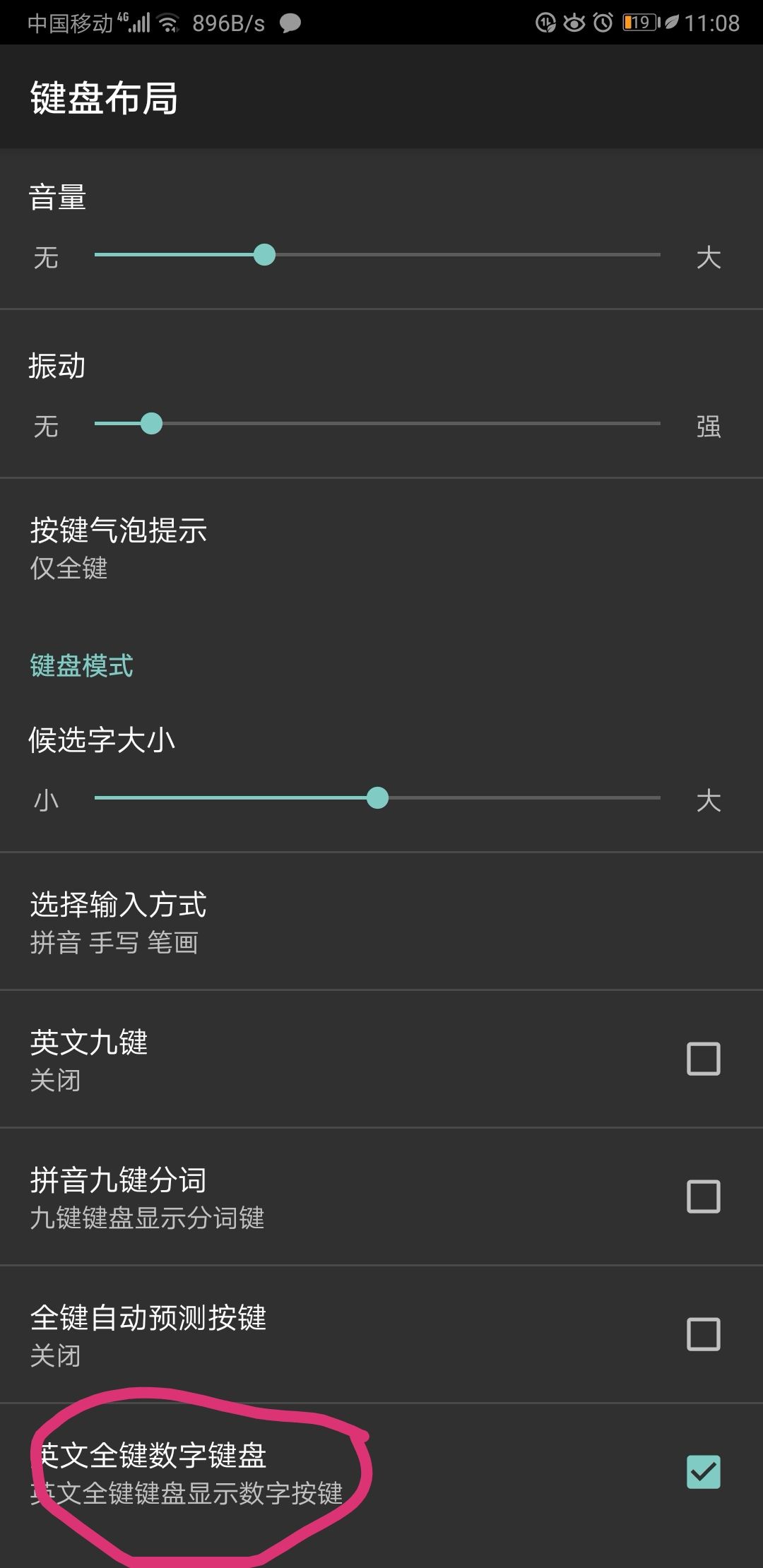 2、更多设置→键盘布局→打开英文全键数字键盘。(觉得按键够用可以不打开)