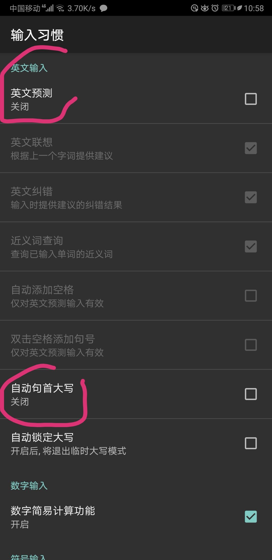 1、搜狗输入法里面找到更多设置→常规设置→输入习惯→把英文预测、句首大写这两个选项给关了。