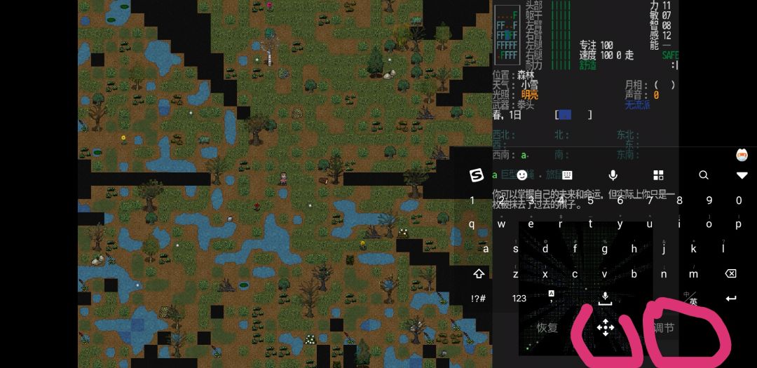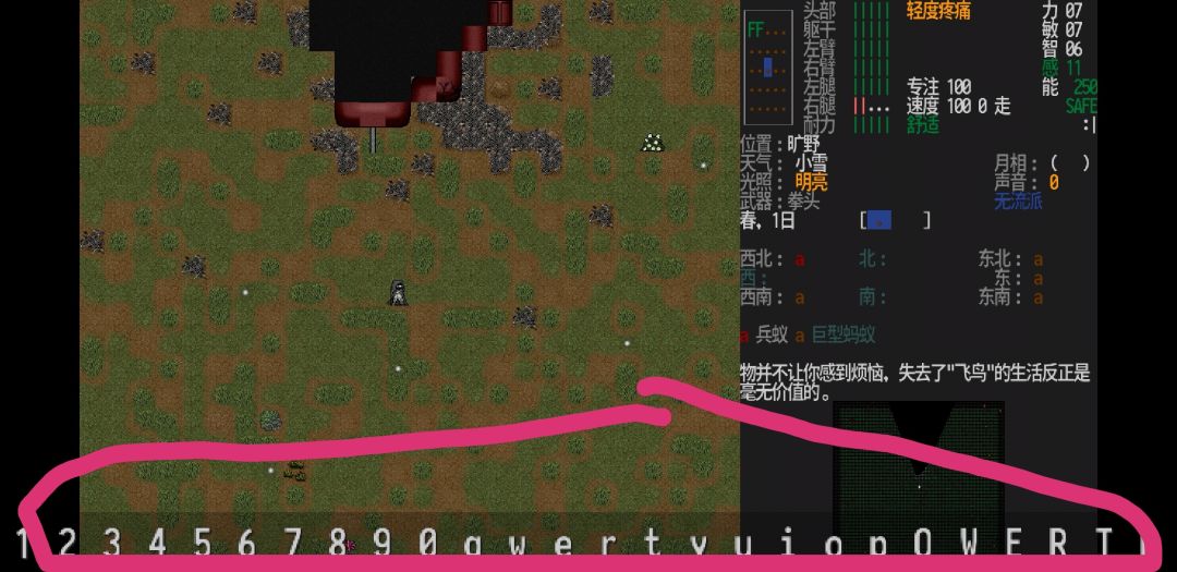 红圈圈到的地方我们可以看到它的作用,到这里基本上已经可以用键盘直接操作人物了。