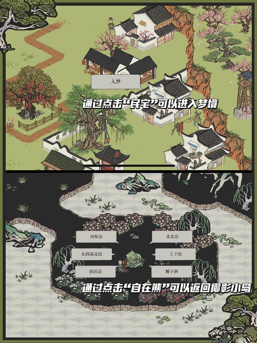 ②点击自在熊可以返回椰影小岛(自在熊方向选择任意均可)