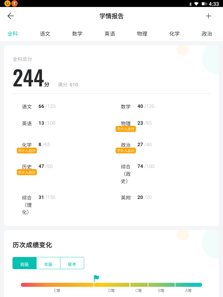 中考437,满分760