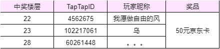 以下为本期活动中奖名单,恭喜冒险者大大中奖啦,请在7个工作日内添加Q群:873132565 进行领奖,过期将视为放弃领奖资格~