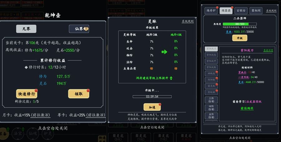 古人云欲速则不达,在《古剑世界》里尤为如此。想要不断提升自己的实力和道行,方式多种多样,但切记急躁,还需动静结合,多尝试各种途径。修真并非无捷径,但还需道友们自己揣摩,最终寻找到属于自己的独门修行诀窍。