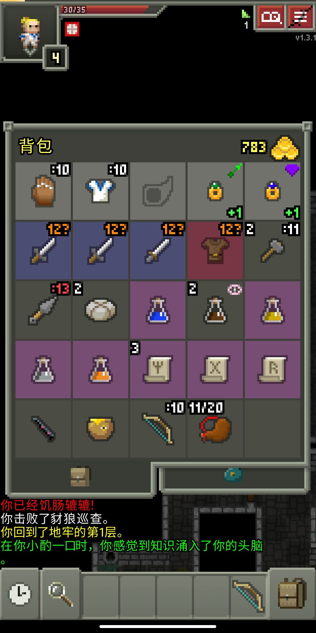 女猎快乐种子,前期有一个一级的财富和神射戒指,都是没诅咒的,神射在三层通道这个宝箱里