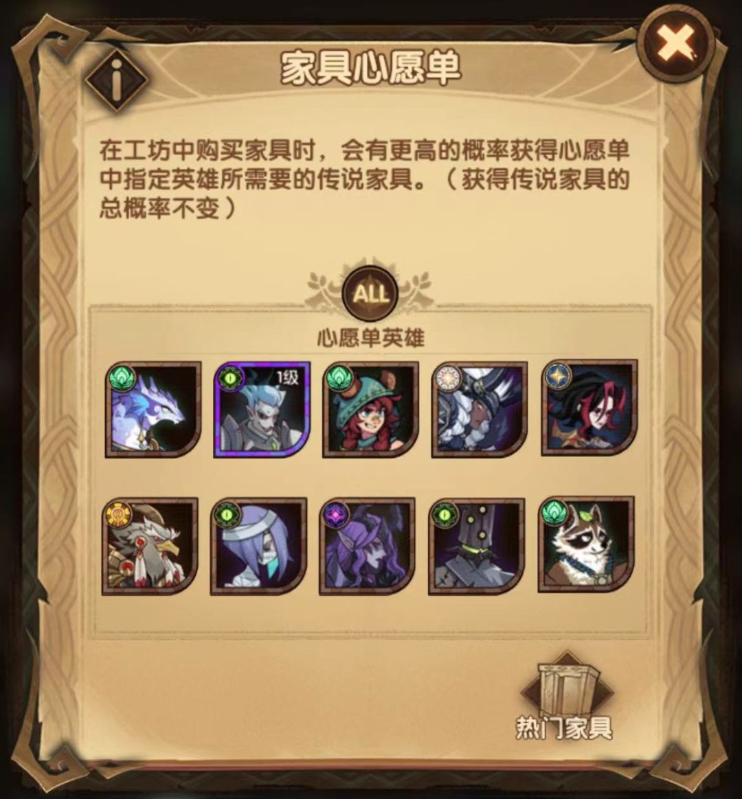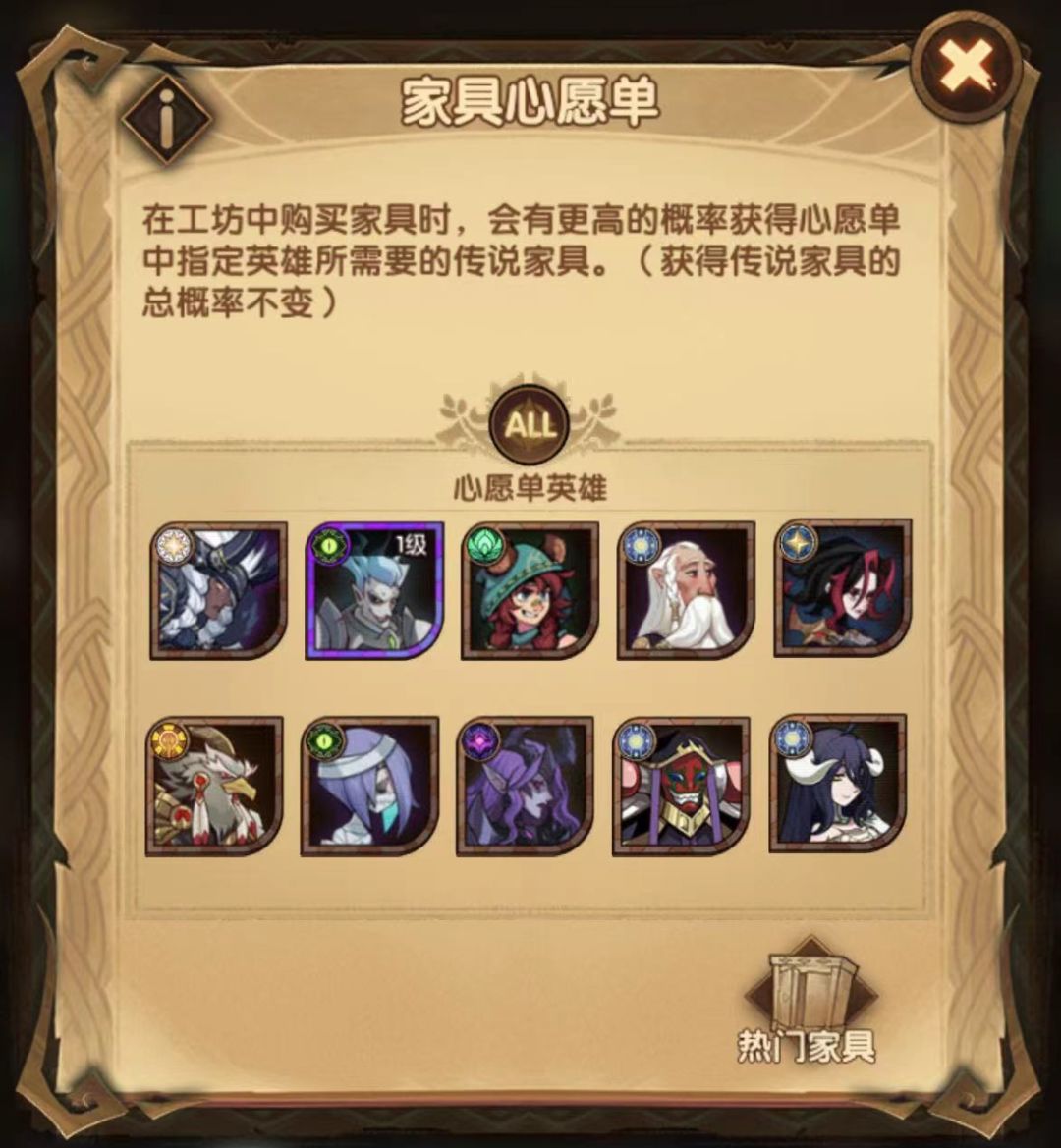 继酒馆心愿单之后,你很快也会遇上家具系统,对应的也会有家具心愿单。家具这个系统是典型的日积月累的系统,这就意味着这个系统需要好好的规划。不能无脑的乱上心愿单,需要想好今后的发展方向来填心愿单。