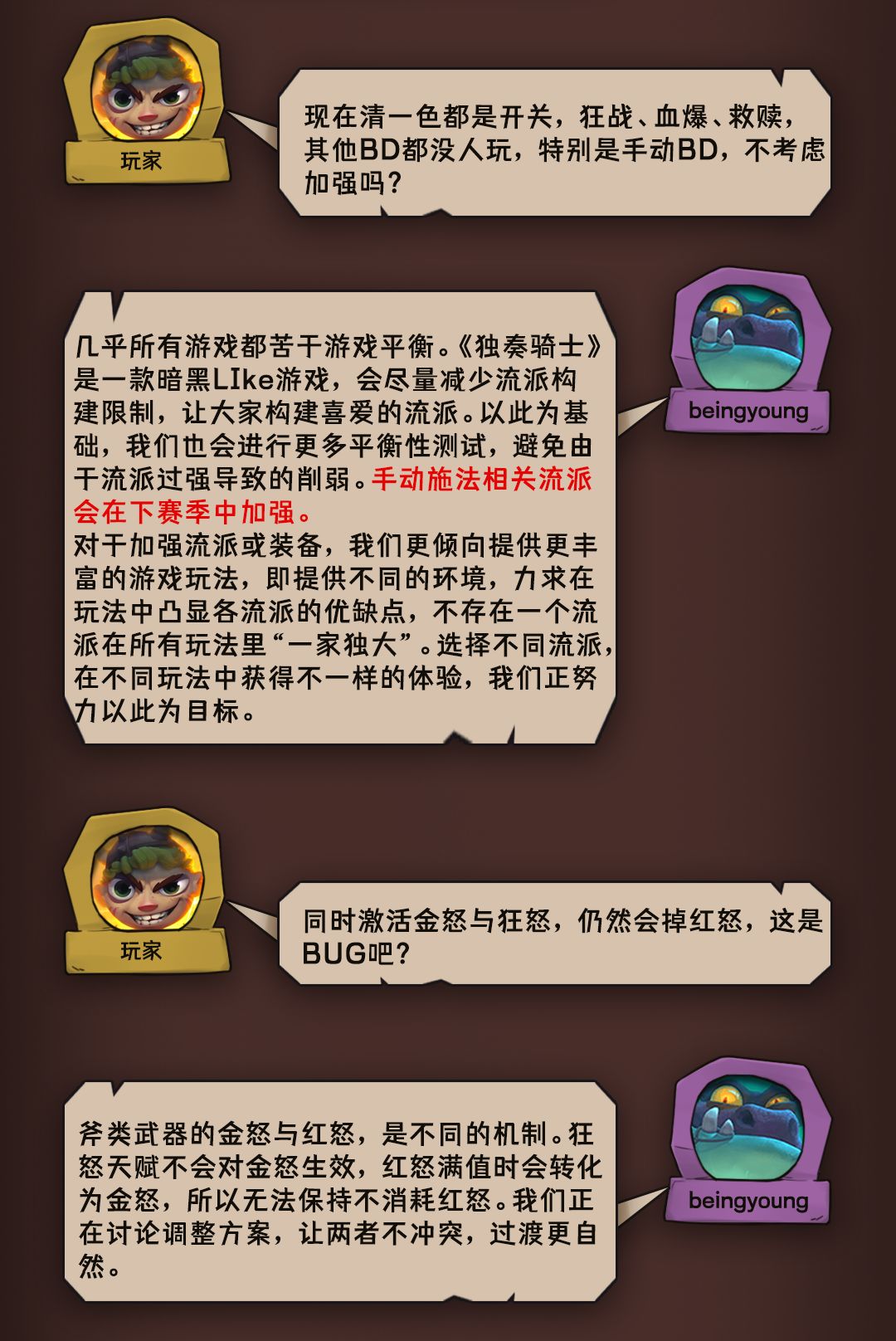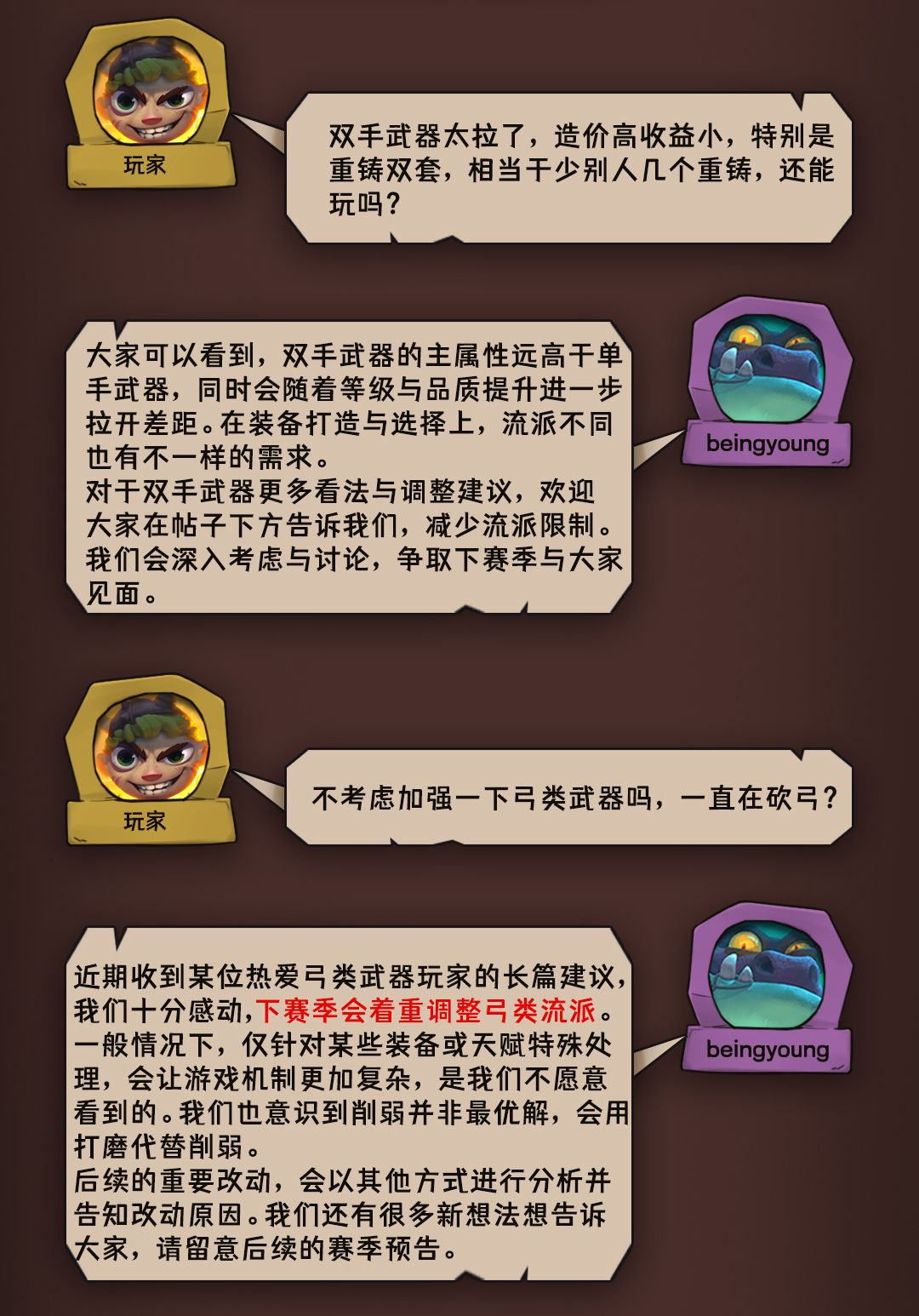 感谢大家反馈!由于篇幅所限,仅挑选部分反馈进行回复。如果有更多想法,或对关于双手武器等流派有哪些建议或看法,欢迎留言告诉我们,下期再见!