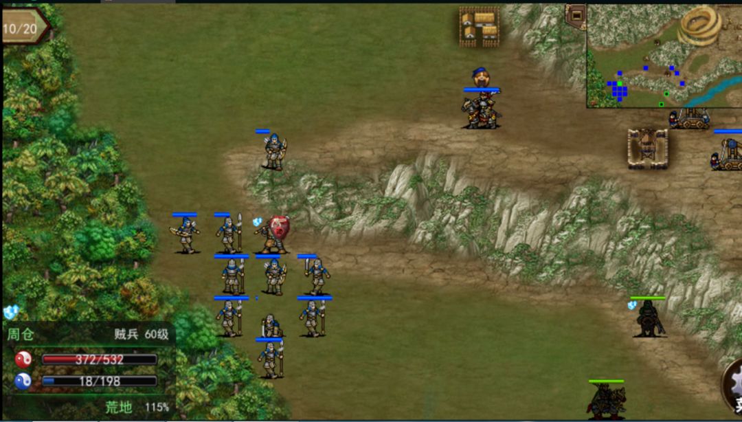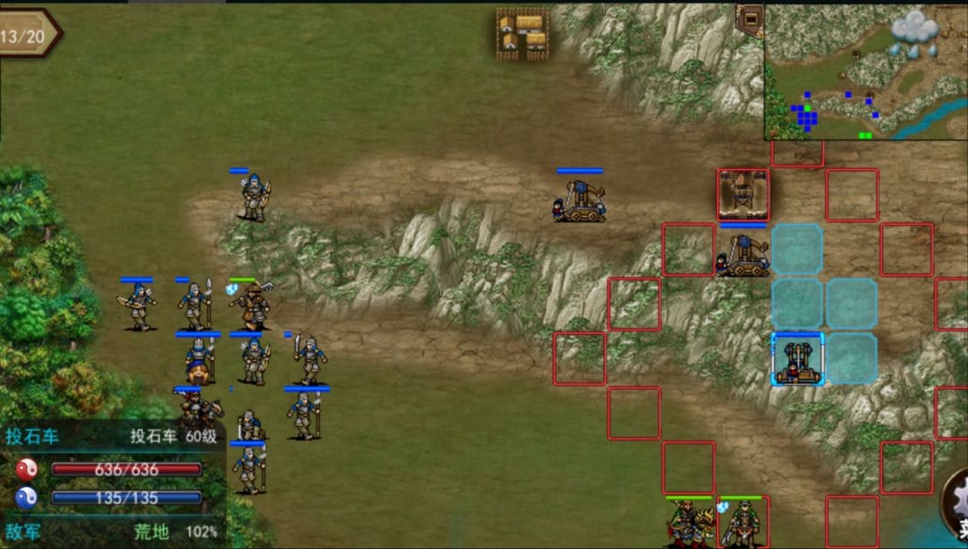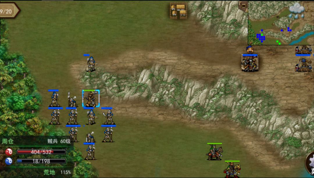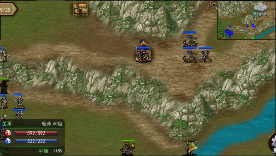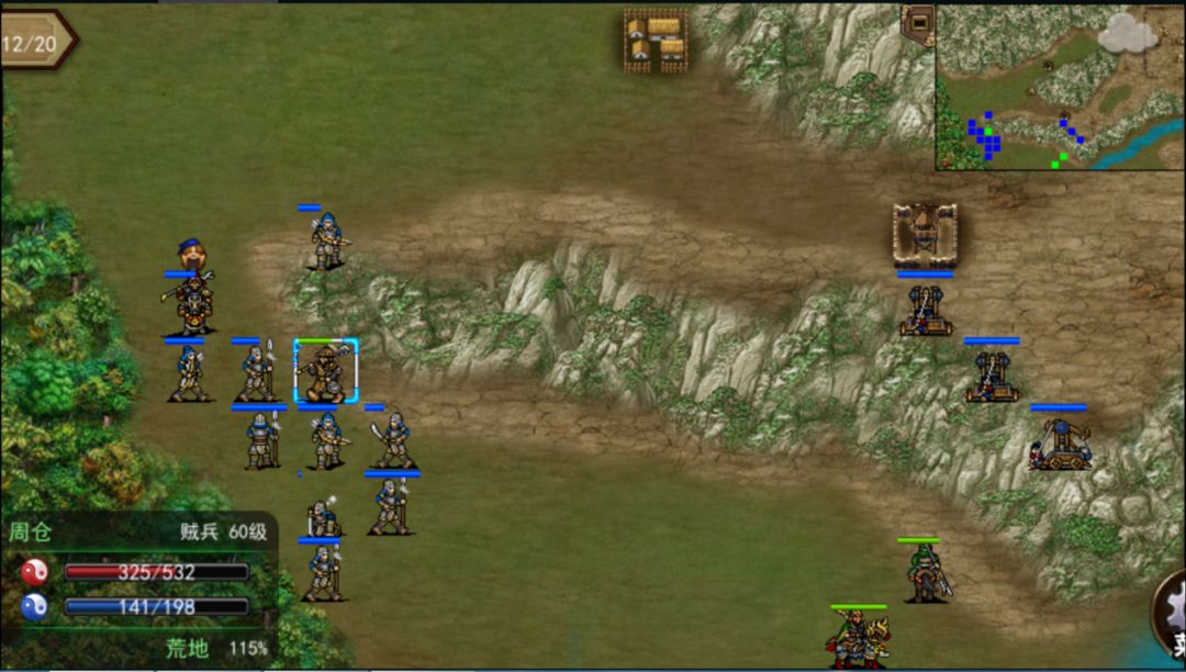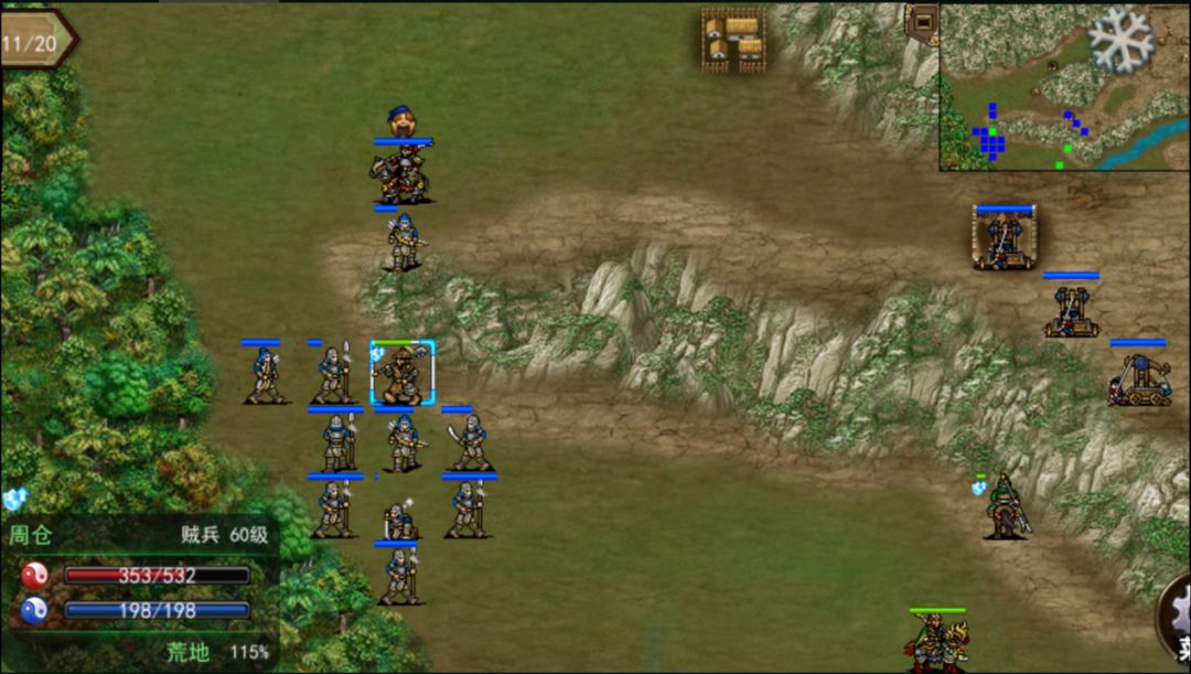 如果天气不好,导致张飞未打死或敌军小兵超过12个,那么你本次基本失败了...重来吧。小兵们攻击周仓。周仓反击杀敌。敌军继续减员,损血。就那样吧,反正周仓死不了。关平又脱离砲车的射程。于是,残血砲车又回到荒地(16,16),其他2辆向周仓移动。
