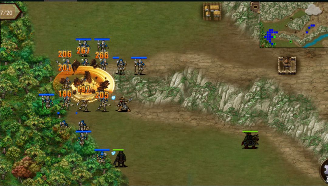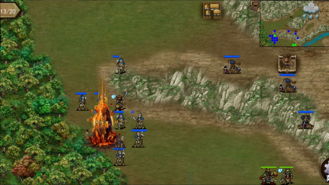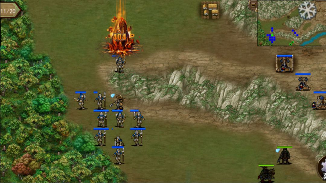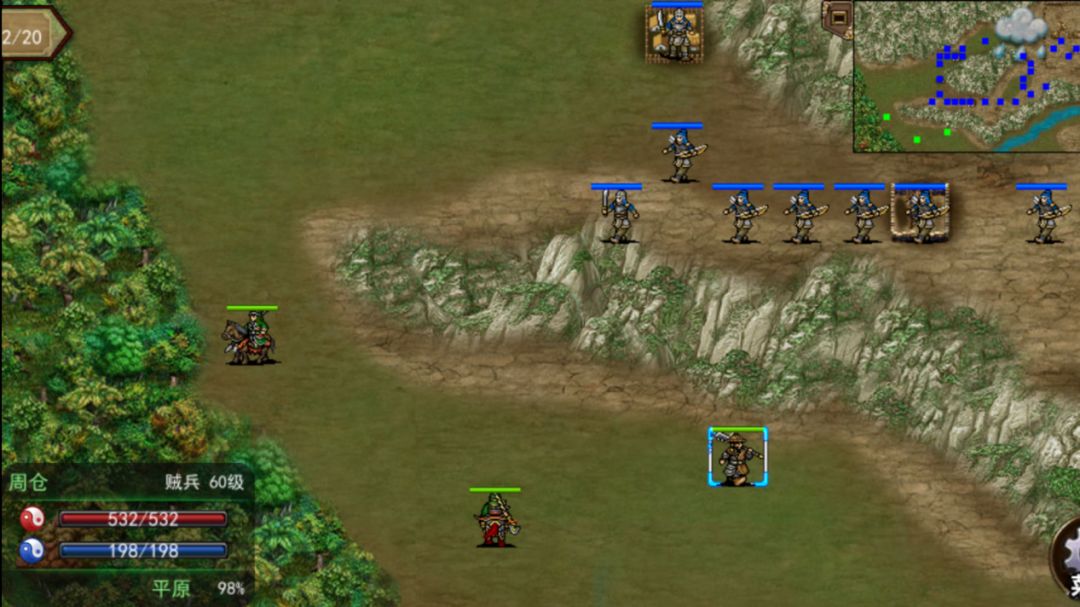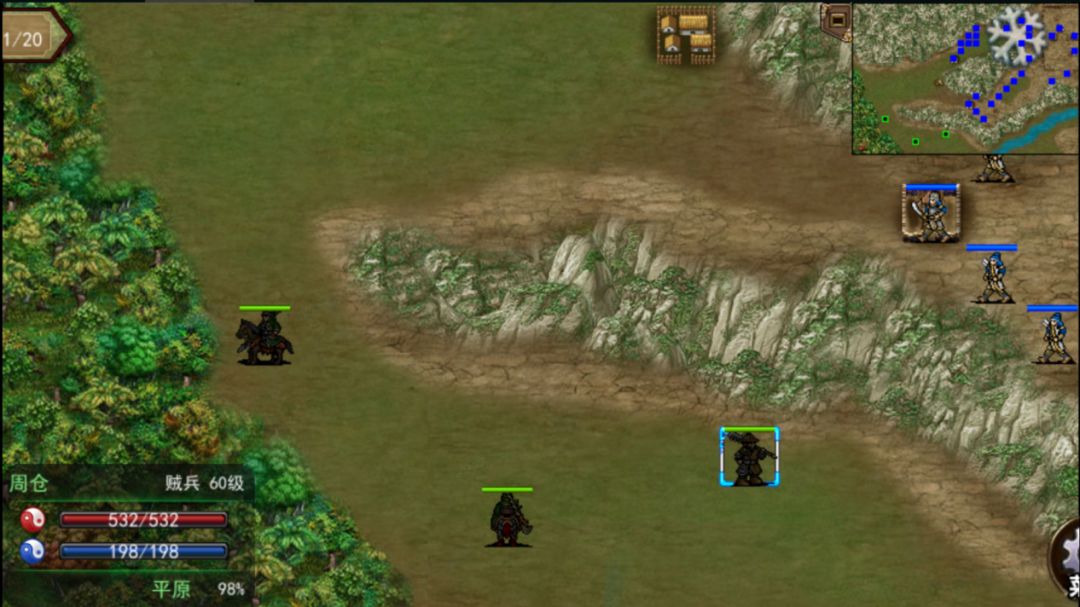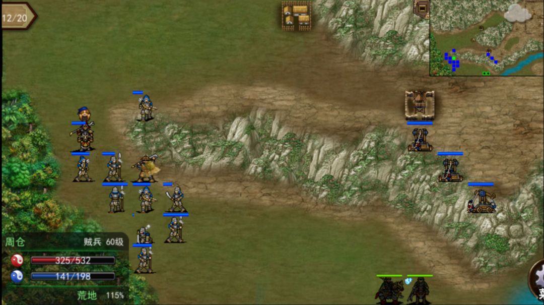 如果天气不好,导致张飞未打死或敌军小兵超过12个,那么你本次基本失败了...重来吧。小兵们攻击周仓。周仓反击杀敌。敌军继续减员,损血。就那样吧,反正周仓死不了。关平又脱离砲车的射程。于是,残血砲车又回到荒地(16,16),其他2辆向周仓移动。