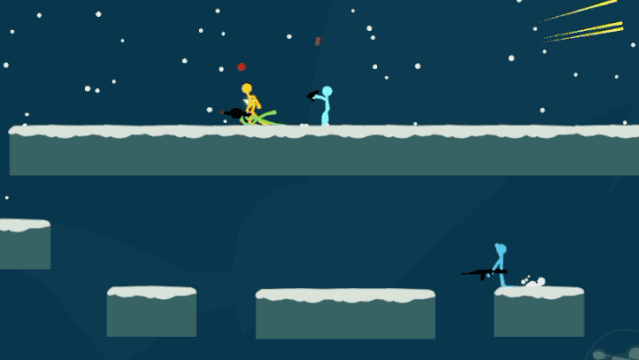 置身这漫天雪花的冰块世界,任何炎热的感觉都已被瞬间抛到九霄云外。火柴人自可尽情开撕,即使上“亿”局下来也不会流一滴汗。不过需要注意的就是,千万不要失手打掉自己脚下的冰块,否则体验急速下坠的快感之余,等待你的可能就是“透心凉心飞扬”了。