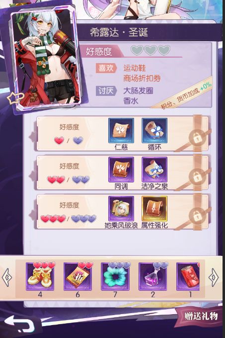 4. 通过活动任务和每日礼包可以获得「茶水券」,「茶水券」用于在礼物商店中兑换赠送英雄的礼物。出战英雄由好感度高低决定,可以通过送礼更换英雄的阵营;好感度最高的5位英雄会作为己方英雄出战,好感度为负的英雄会作为敌人出战。