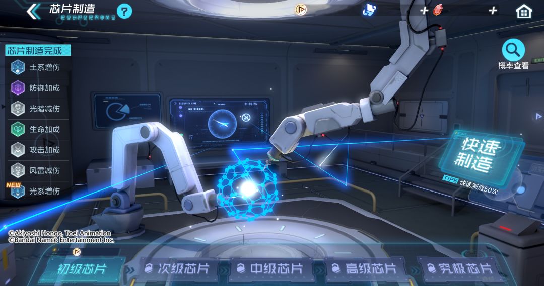 队长们前往养成界面中的芯片功能,不仅可以进行一键装配,还能根据自身需求自由搭配芯片组合。大家可在芯片制造中获取不同品质与属性的芯片装备,同时也可不断提升芯片的等级,大幅度增强对应的加成效果。