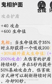 减少了生命值收益,换成了攻击力收益。鬼面的定位不再与天魔重合,这个盾对于纯输出且高持续输出的式神来说收益很高。山风夜叉这种半肉刺客可以出,般若酒吞这种轻装战士可以出,技能ad暴击ad视情况也可以考虑。另外鬼面和千鸟的触发血线都是35%,在这四秒内千鸟的流血都流在盾上,可以让吸血充分发挥作用,所以吸血多回复多的式神可以从鬼面+千鸟中获得的收益是十分恐怖的