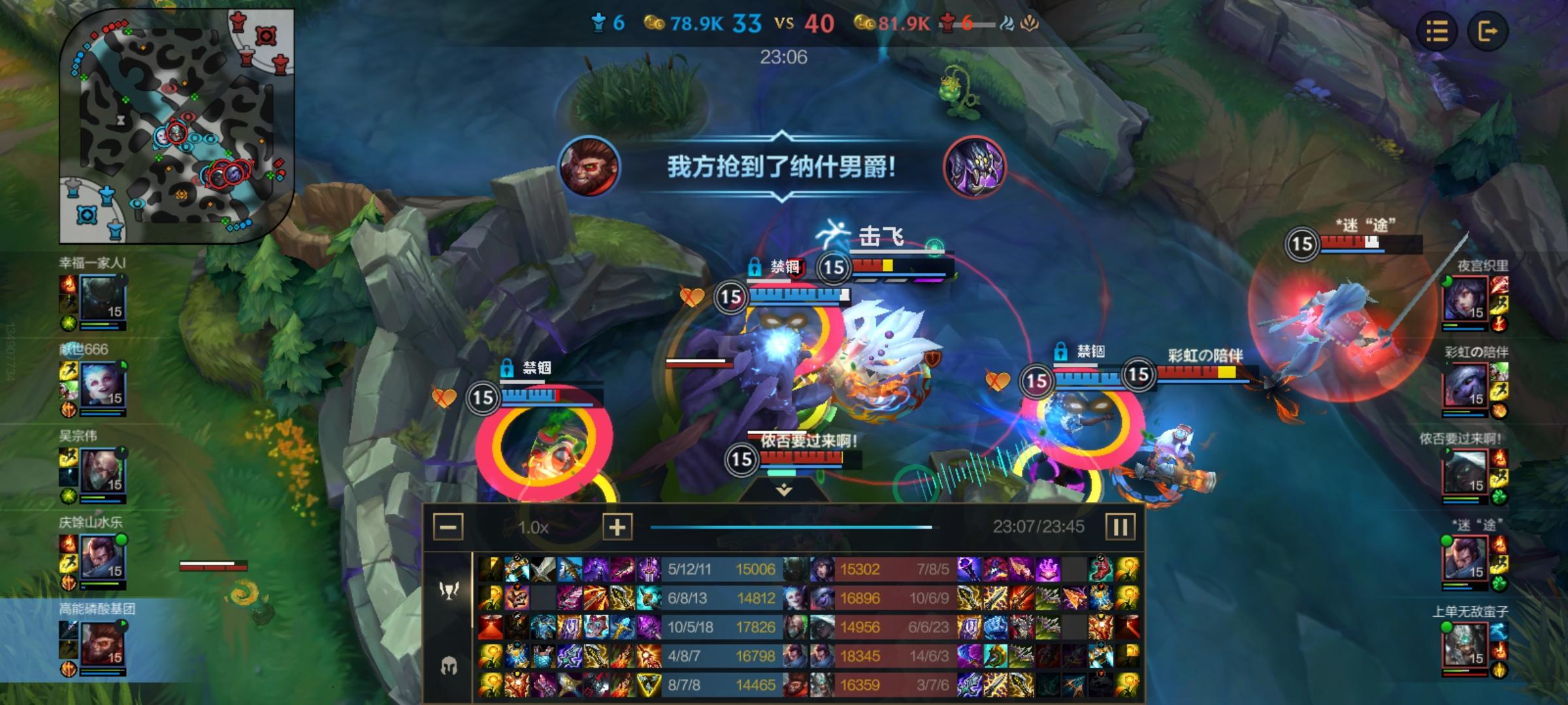 下路前期把小炮养成爹,我看到下路五分钟送三个头就没去下路,结果金克丝打字“这打野”。我看他没喷脏,就笑笑不说啥,只回了个“下路送了几个自己有数”。中期被小炮当成狗来军训,一群人直接连塔都出不去,于是安心补塔刀打塔下团,把眼慢慢做出去。后期还是靠我和炼金配合抢大龙翻了。