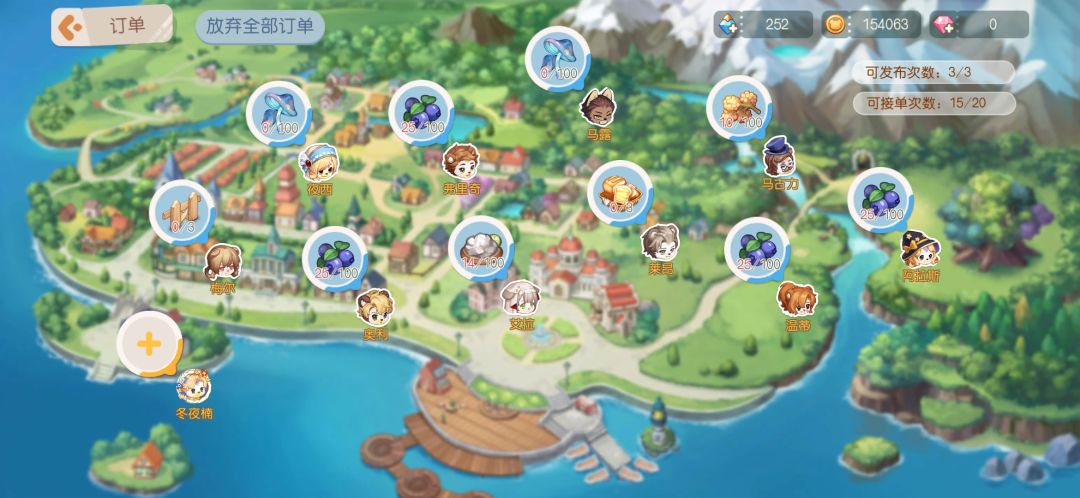 ④订单(每天可以接单20次,每次可获得100~500经验,然后在乘20)