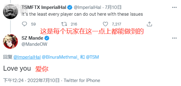 这段录像被发送到网上后,Hal和TSM战队的众人马上就收获了观众们的赞赏。事后发现自己逃过一劫的对手也特意来到了Hal的评论区表达了感谢。
