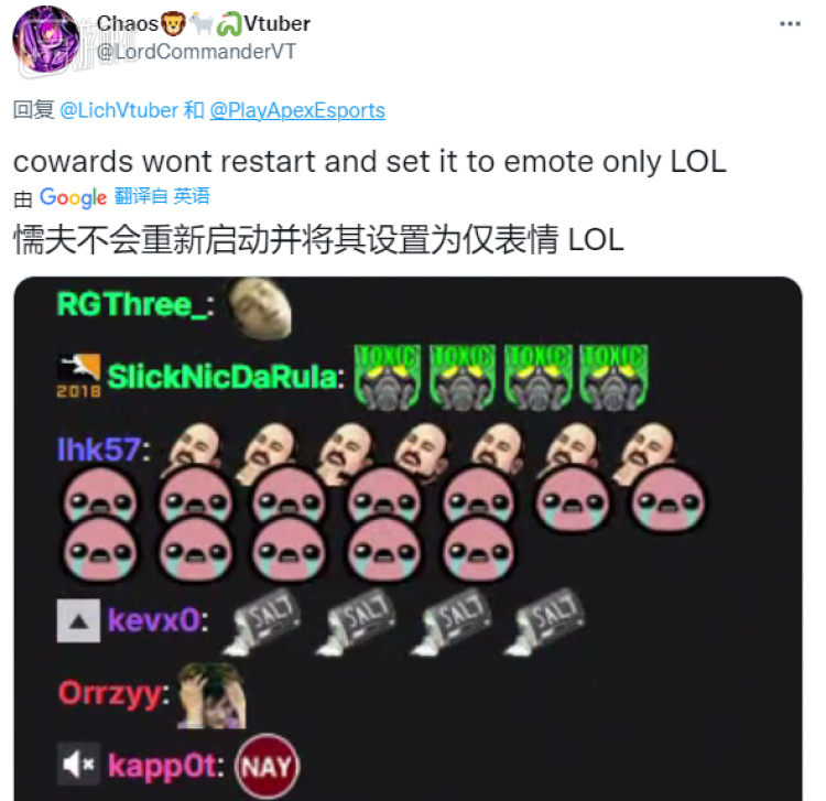 对于一个线下比赛来说,选手掉线完全是一个难以想象的问题,“被挂机”的也远远不止SZ战队的一人。本次比赛刚开赛的时候就有至少3名选手出现掉线问题,在所有人未开一枪、未出现死亡的情况下,主办方忽视了观众们要求重开的呼声,反倒打开了直播间内的“仅限发送表情”功能。