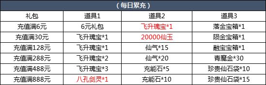 【活动简介】活动期间,每日累计充值达到指定金额即可领取相应好礼。
