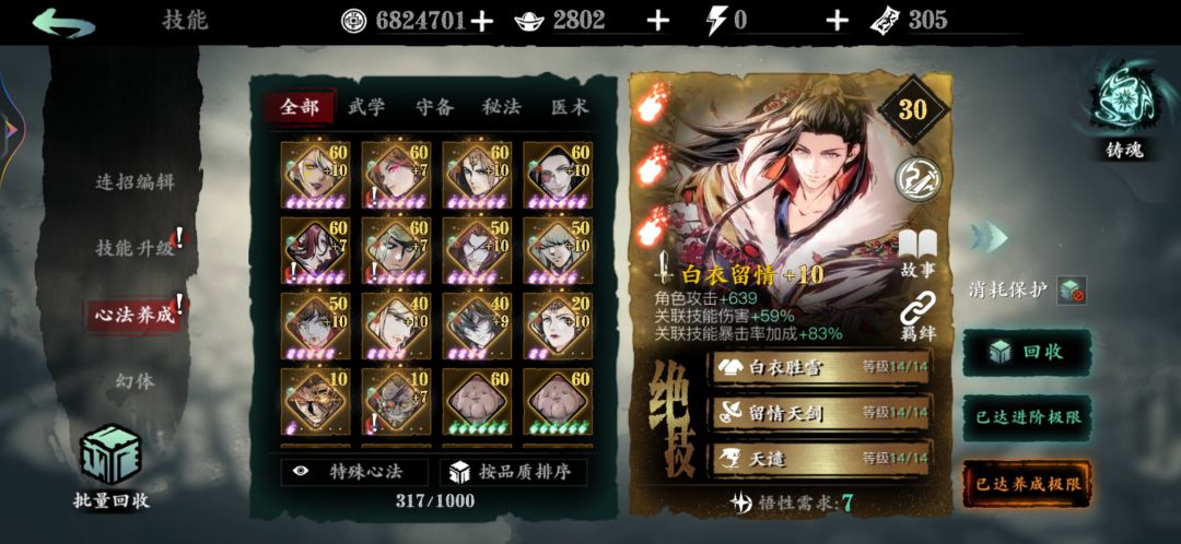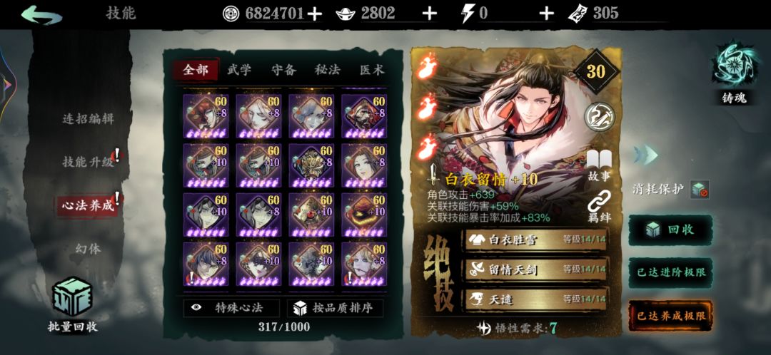 心法进阶还需2个月全部加10。