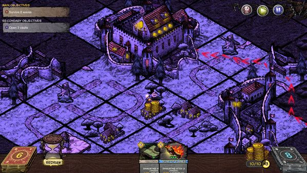 每张卡牌都需要消耗一定数量的金币,随着时间的推移,你会获得一定数量的金币,之后你就可以建造农场、村庄和其他有用地点,来增加收入,释放牌组的全部潜力!但请记住,金币并非建立领地的唯一方法——务必侦察附近区域,寻找包含有用奖励的宝库。