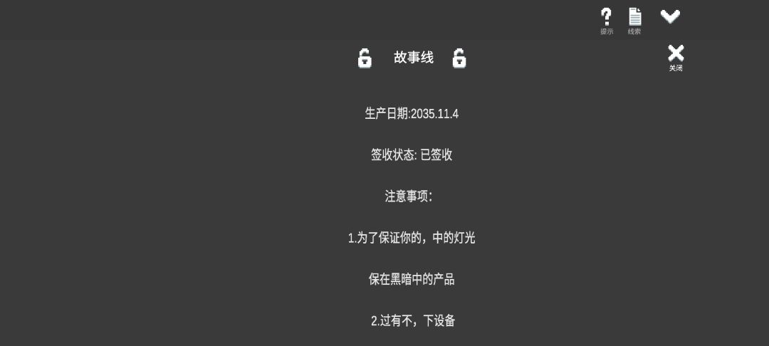 如图,第一章/序章的时候,查看箱子上的标签,然后看故事线,文本是乱的。