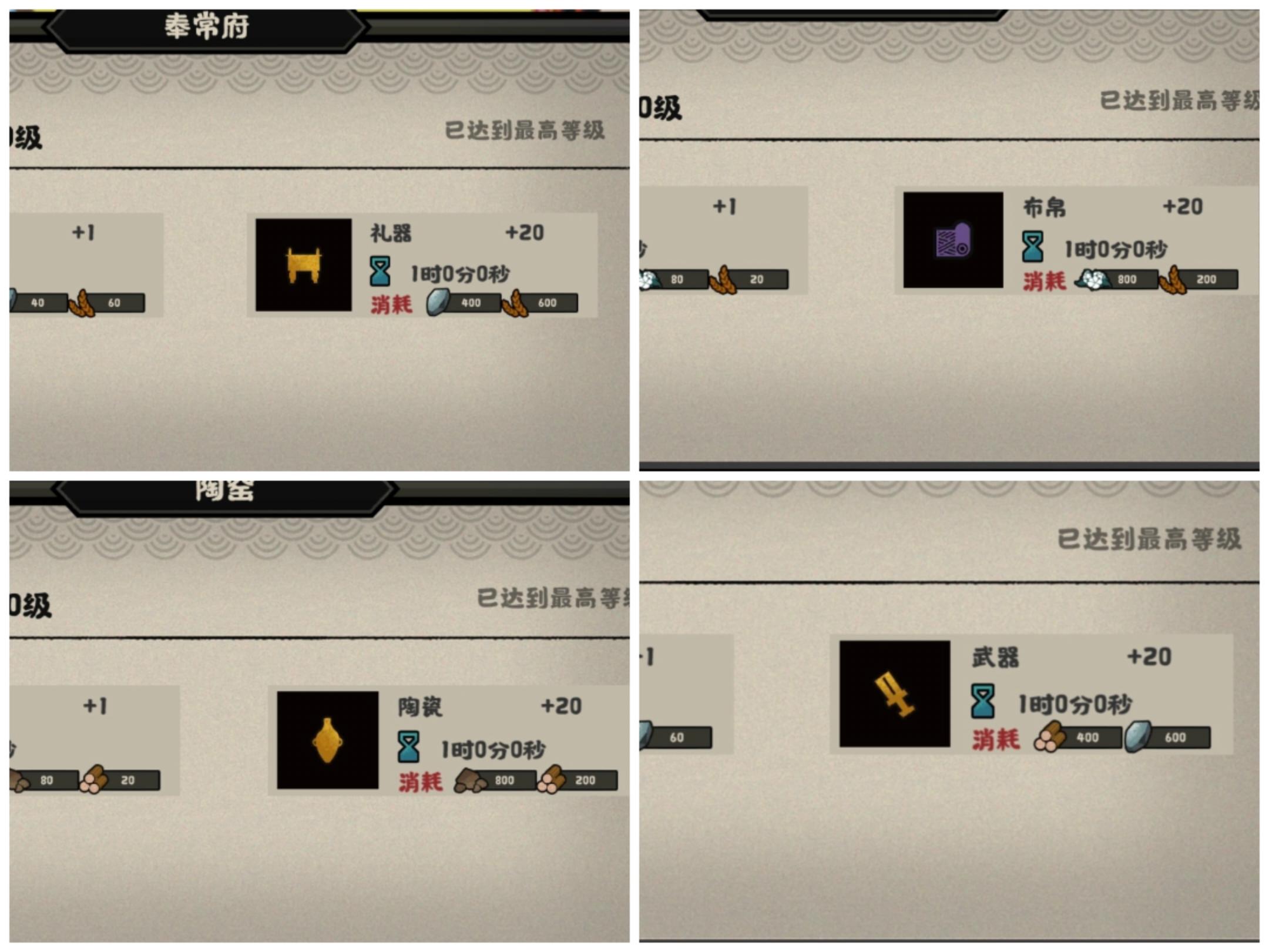 2.满级建筑各种道具生产资源