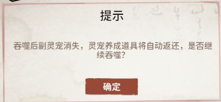 当副灵宠为培养过的灵宠时,吞噬后该副灵宠将消失,灵宠养成道具将自动返还。