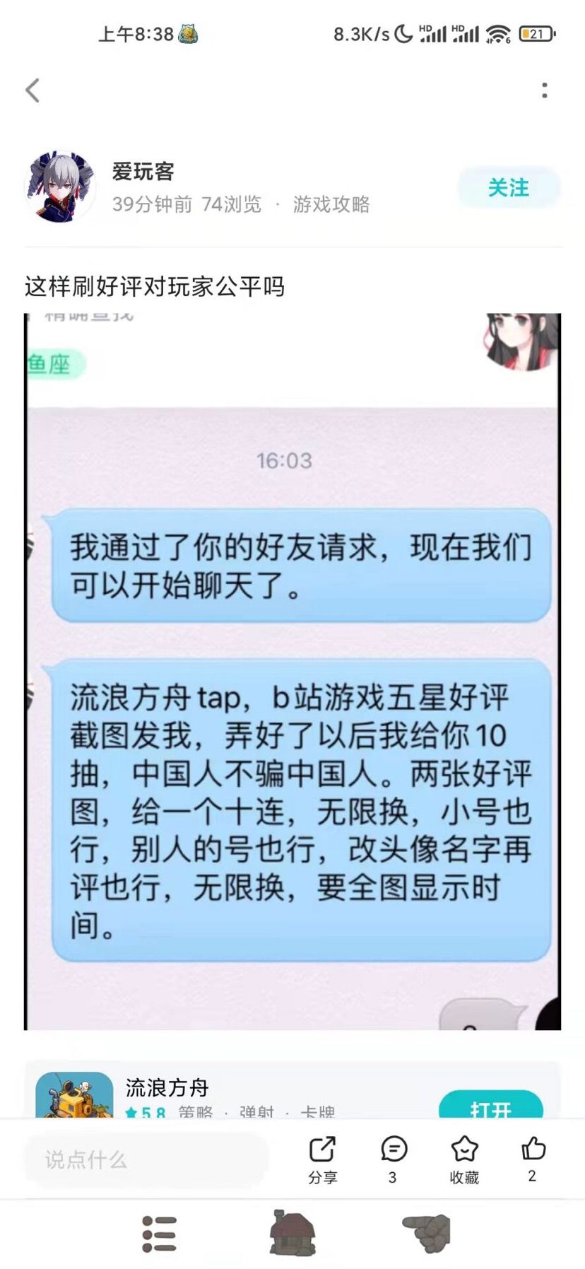 再说说昨天刷评论的事,官方本来是好心送给大家二十抽,可是让人钻了空子