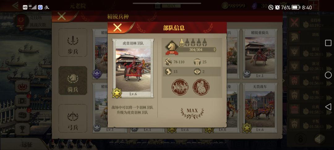 补充:满级精选和标枪一样的无视防御,满级皇家铁甲和羽林卫一样大减防,满级皇家卫士和禁卫一样无视地形和防御工事