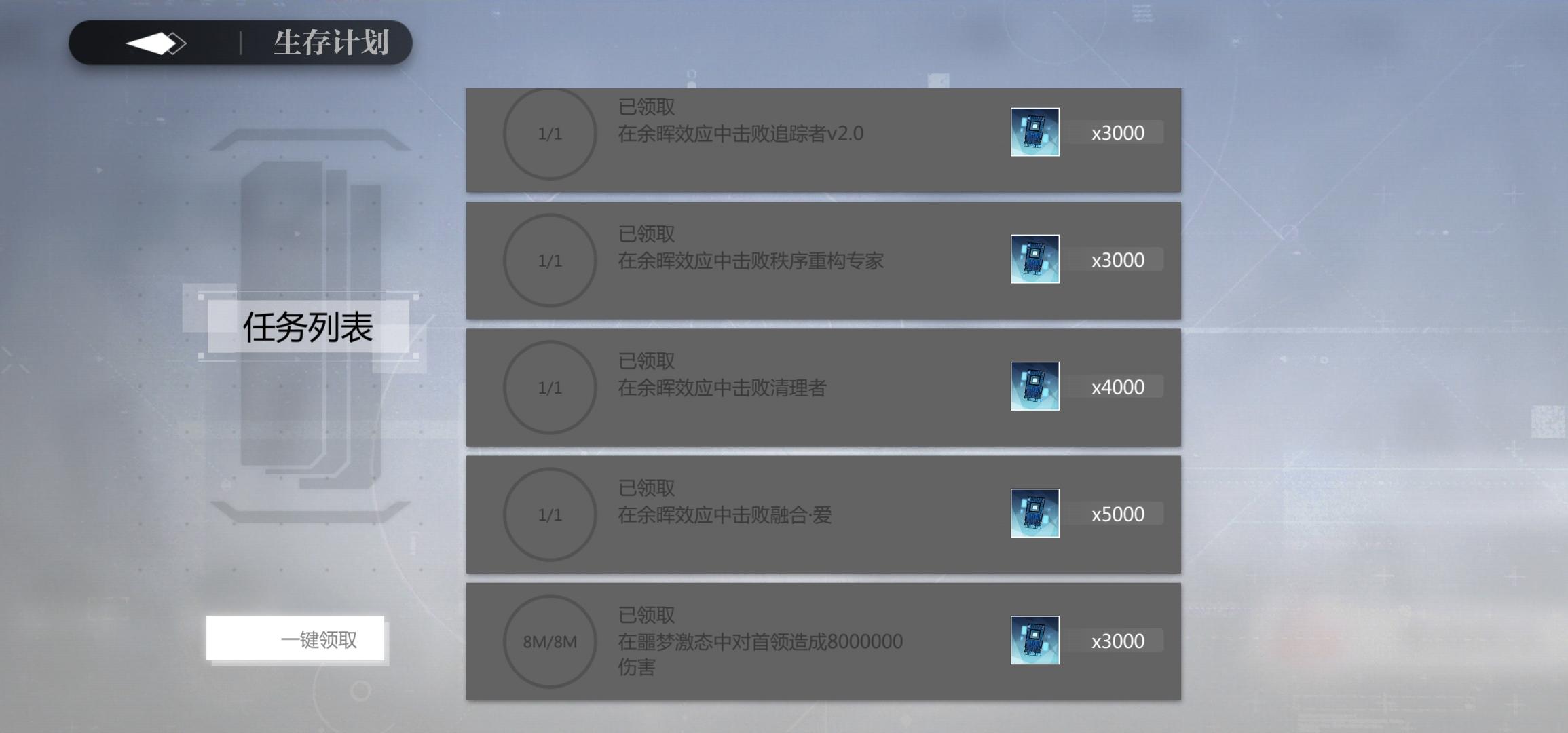 还有活动任务,打了300w就一口气领完了800w的奖励,不知道是不是复刻了卢纳战线的bug。