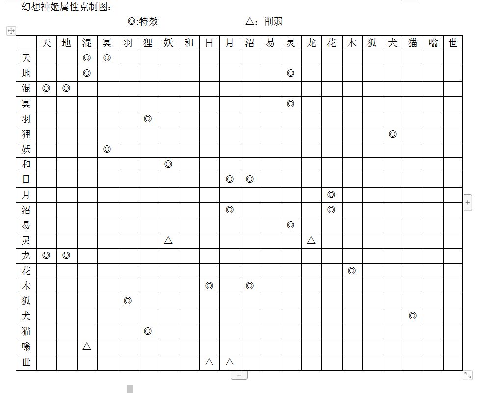 幻想神姬—属性克制表