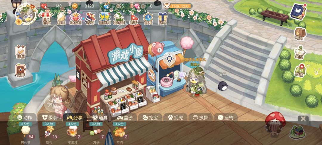 在奥比广场游戏小屋旁做棉花糖(一次300)