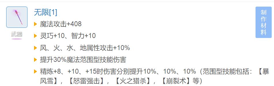 说来很惭愧,目前为之,我的法师并没有投入武器,一把龙杖是用我后来开的贤者武器看中生命上限15%,另一把武器最好是无限,范围型技能增伤,为了回廊使用(我本人还没灌注,用着元素融合杖,凑合用)