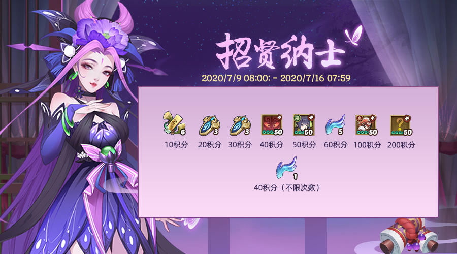 活动期间,消耗【招贤书】进行心愿召唤可获得积分,达到相应积分即可领取对应奖励。