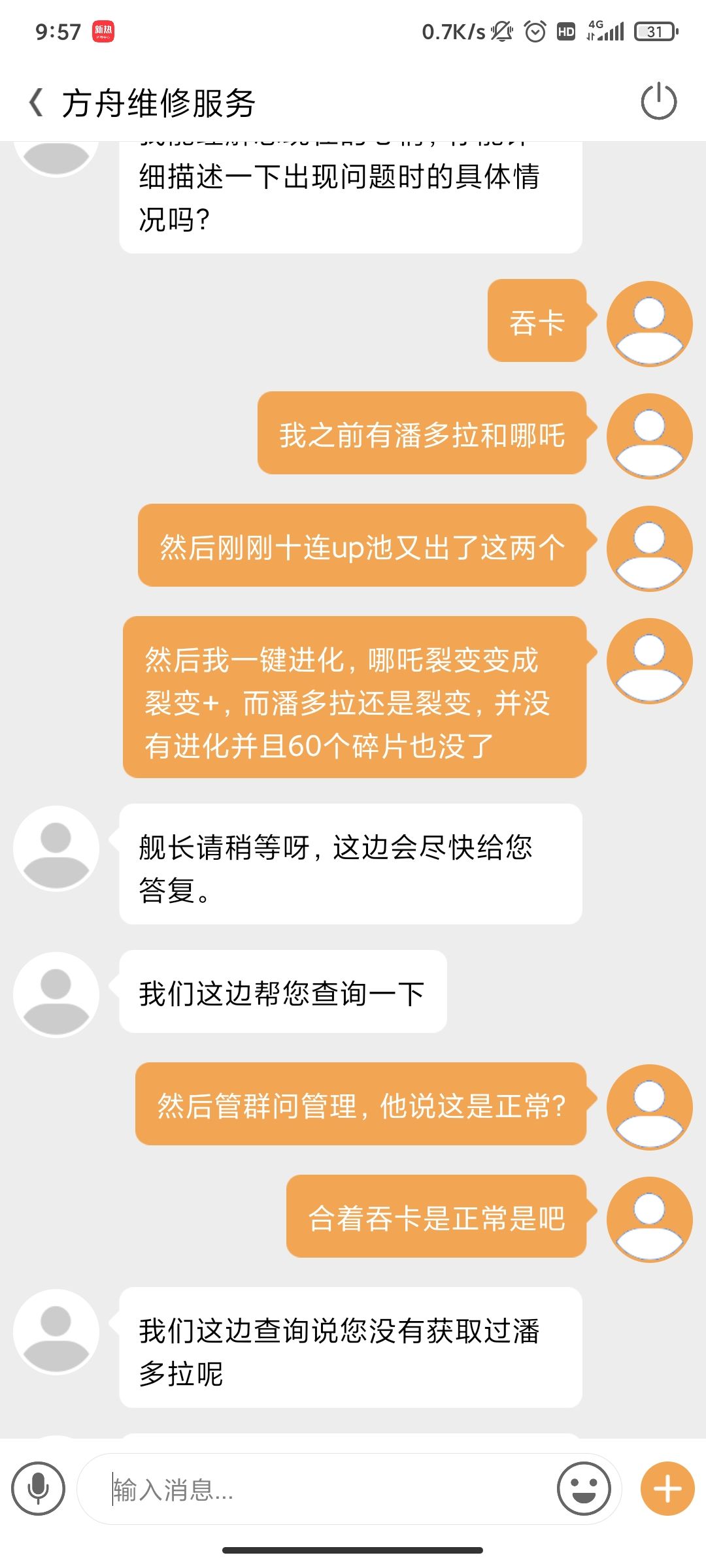 B游戏赶紧死,早上十连双黄结果系统给我吞了一个找客服说你就出来一个,以后必须录屏玩游戏,刚刚十二胜竞技场又遇到挂,对面不懂判我掉线?这个我录屏了,你到时解决啊,我的门票怎么算?