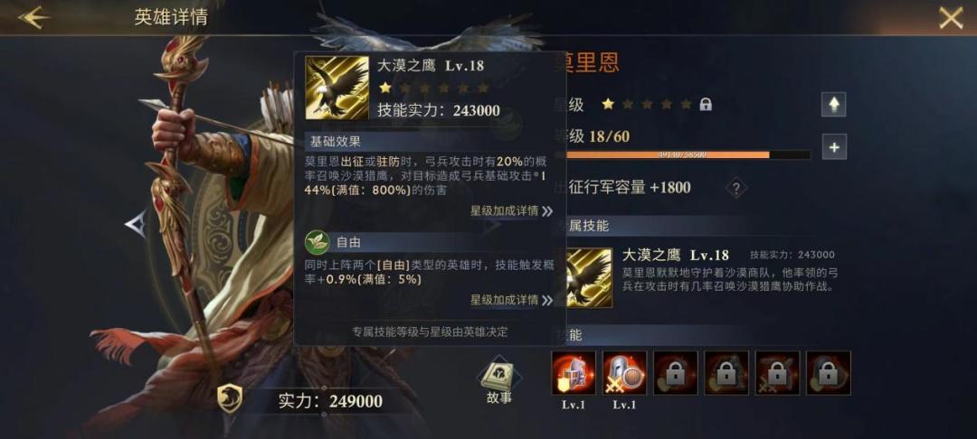 作为签到七天获取的伊莱恩,能白嫖到三星不止,还能解锁全部技能,属于真正意义上的良心英雄,出任英雄议会里提高弓箭手的攻击力,与莫里恩的【弓兵攻击】不形成冲突,且【大漠之鹰】提供了概率附加伤害。属于弓箭队前期的雏形。